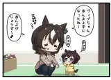 4コマ「お泊り最終日のスズカさんとミラ子」